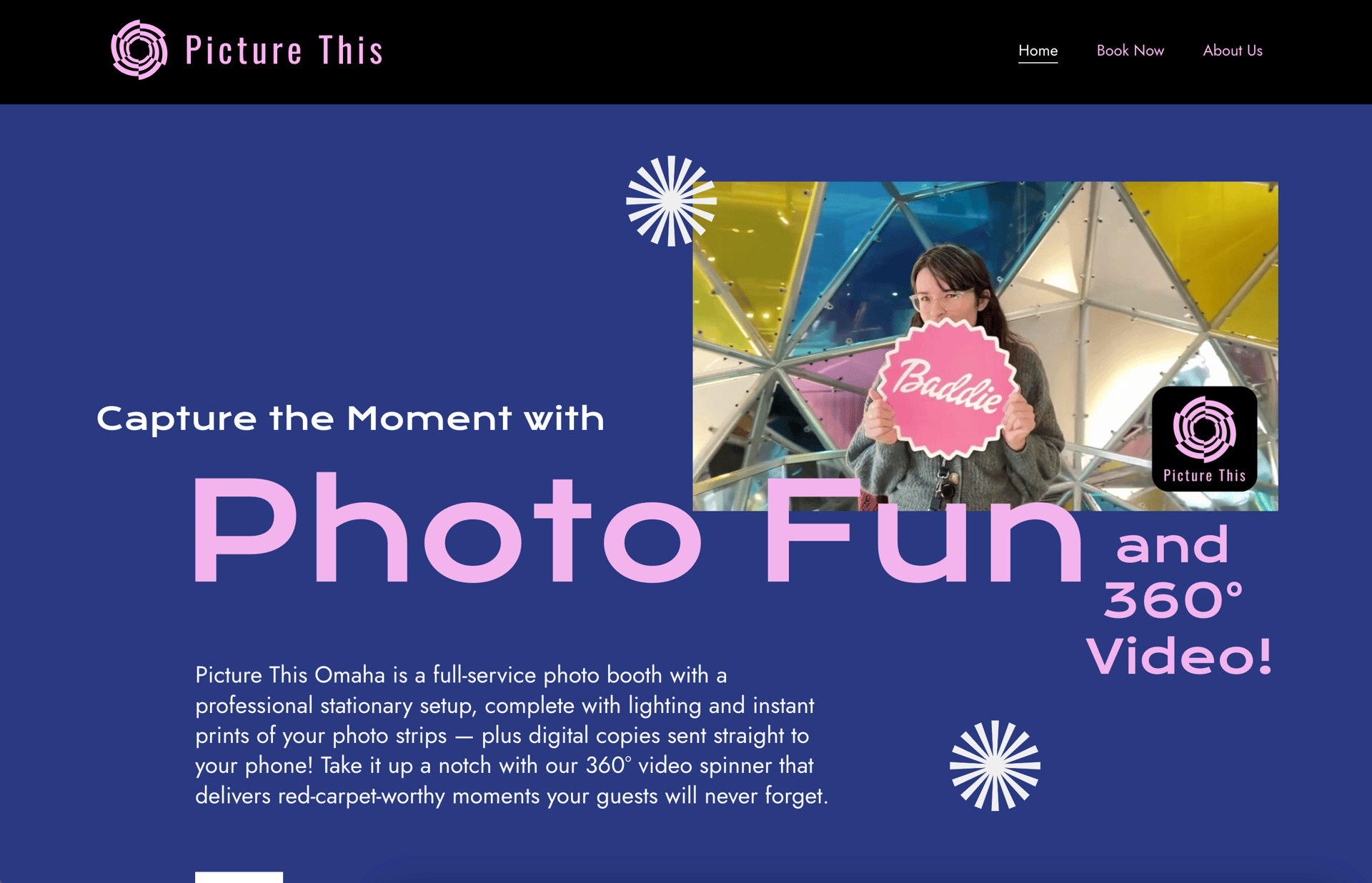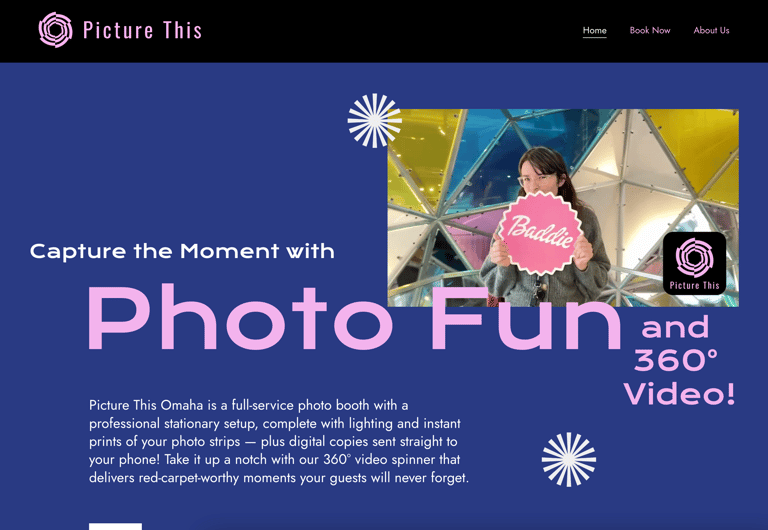 Picture This Omaha is a mobile photo booth and video spinner company that makes fun their business. To match the high-energy vibe they bring to every event, I designed their website with bold colors, punchy graphics, and plenty of real photos and videos from the real life moments they help create.