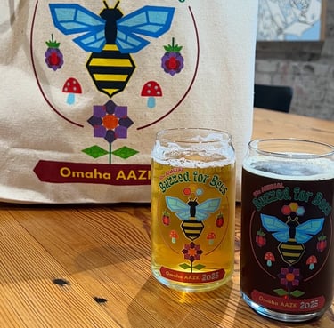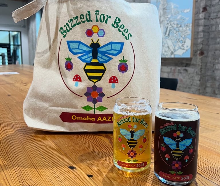The American Association of Zoo Keepers Omaha Chapter needed a new logo for their 10th Annual Buzzed for Bees fundraiser event, with accompanying merchandise that inculded pint glasses and canvas tote bags. The event was a huge success and the merch sold out!