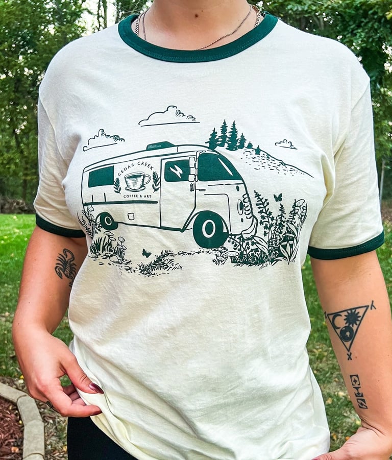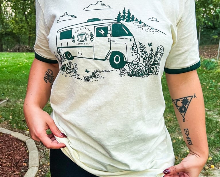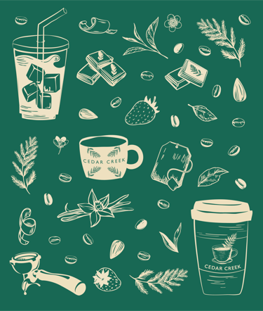 Cedar Creek Coffee & Art wanted to build out their brand elements and offer their customers some fresh new merch, including custom coffee-themed illustrations for t-shirts and social media content.